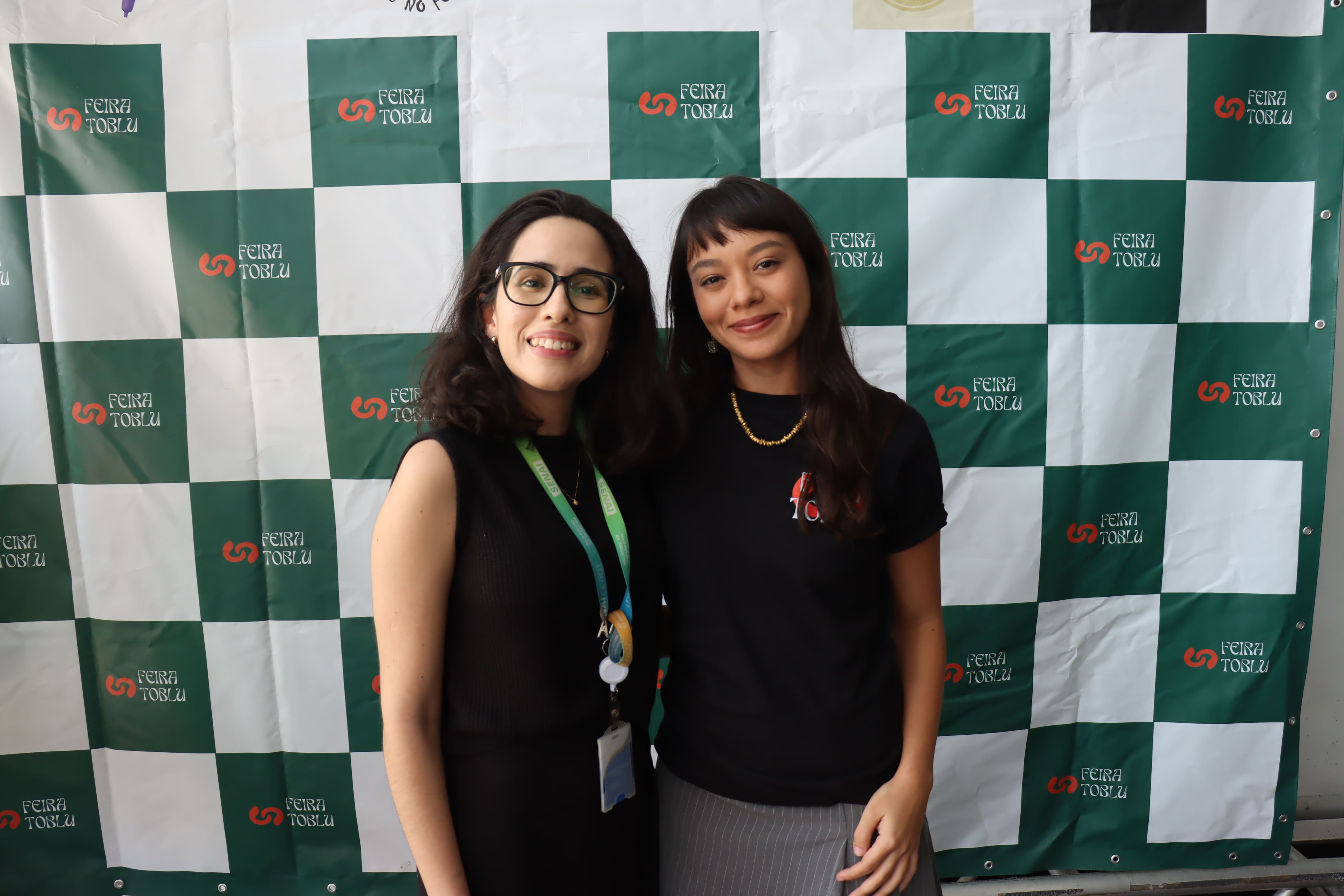 O estande do SENAI CETIQT contou com a participação de Júlia Vidal e Úrsula Rocha, representando a equipe de mercado da instituição, apresentando aos participantes mais detalhes de serviços oferecidos, como as consultorias em ESG e a pós-graduação em economia circular e produção sustentável.
